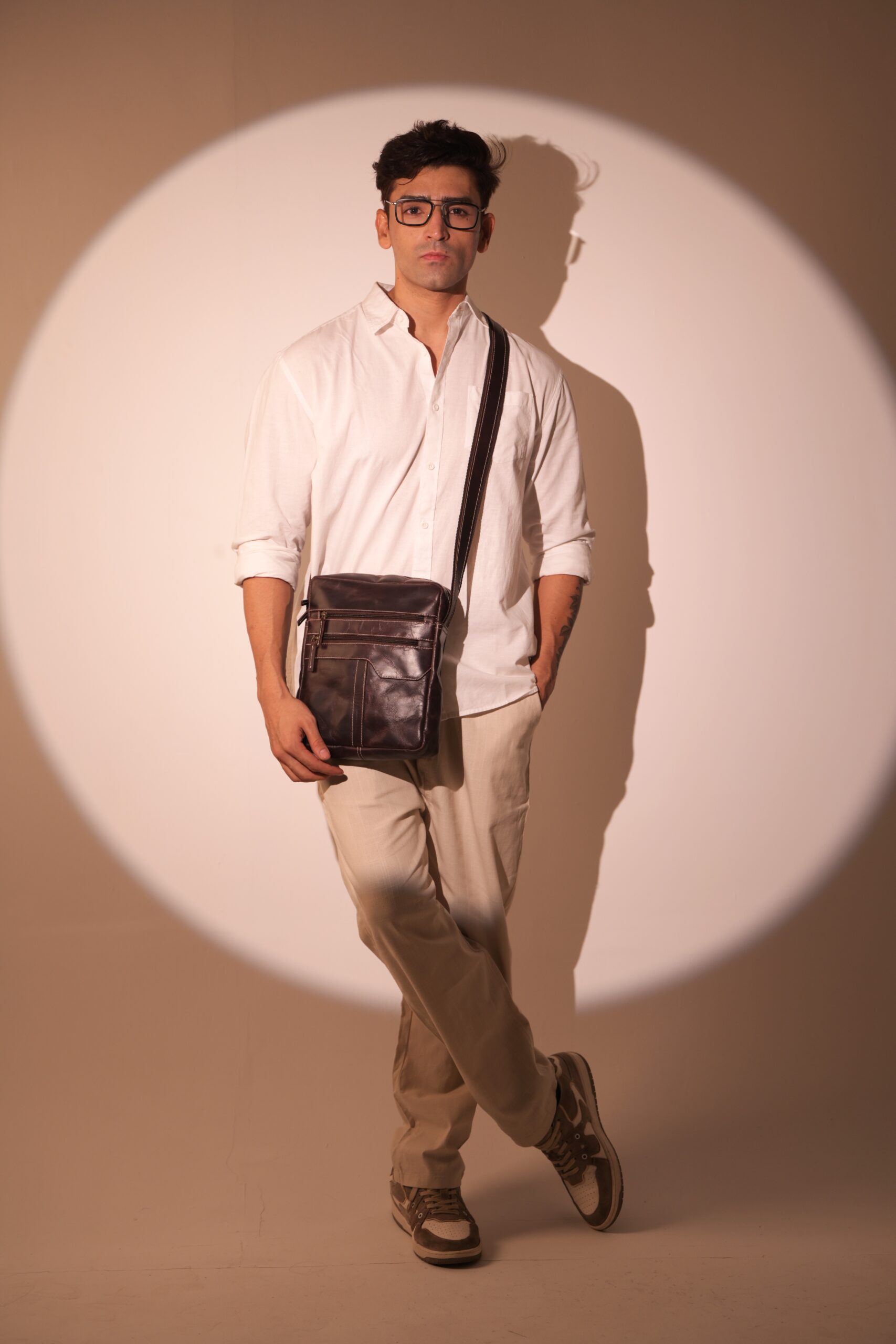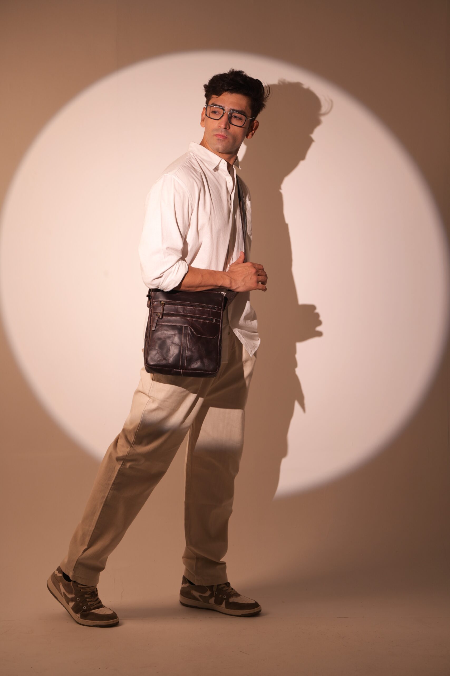 A refined take on the traditional messenger, this piece combines heritage design with everyday functionality. Crafted from resilient buffalo leather in a rich distressed brown, it develops character over time, reflecting its owner’s journeys. The top zip fastening conceals a well-organised interior, making it ideal for carrying work documents, devices, and essentials in style.