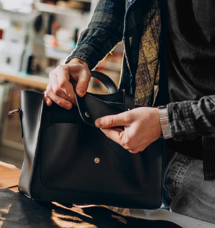 Bags, belts, and wallets managed under one integrated production ecosystem.